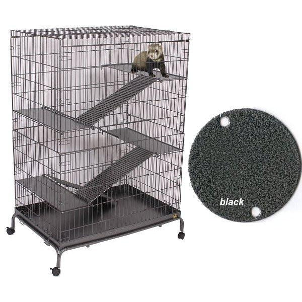 All steel construction, all steel base, ladders and platforms make this the heaviest duty ferret cage on the market. Rolling caster sturdy, tubular steel stand with non-slip shelves create a frame to hold the steel base of the cage. Includes 4 platforms, 4 ladders, black hammertone, and a powder-coated finish.
